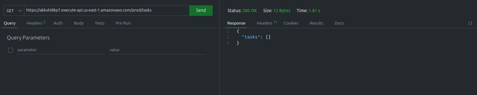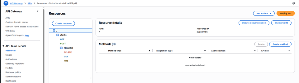 createTaskFunction,listTasksFunction,getTaskFunction,updateTaskFunctionetdeleteTaskFunction - Created the API Gateway :